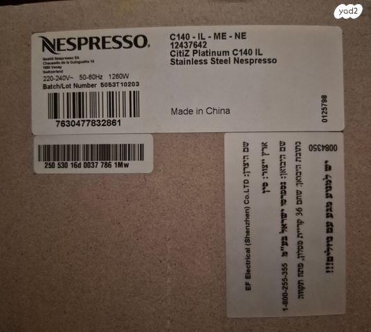 מכונת קפה NESPRESSO Citiz Platinum - C140. מוצר חדש לגמרה, בא באריזה מקורית.פרטים נוספים