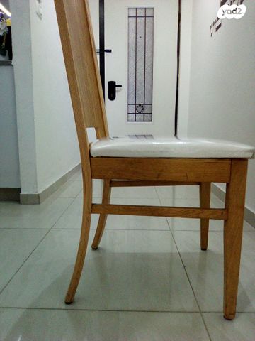 7 כסאות מעץ לפינת אוכל בצבע קרם, עטוף במגן שעוונית שקופה. גובה מושב: 45. עומק: 41. 100 שח לכל כסאפרטים נוספים