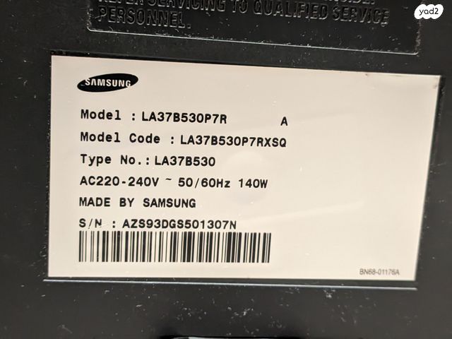 טלוויזיה LCD "37 של סמסונג דגם Samsung LA37B530. רזולוציית Full HD. תקינה לחלוטין. רואים ושומעים טוב. ללא שלט. איסוף מחולון.פרטים נוספים