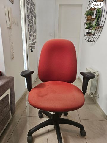 למכירה כיסא משרדי עם גלגלים. עם מנגנון לכיוון גובה הכיסא וענת גב. ריפוד בצבע אדום. במצב טובפרטים נוספים