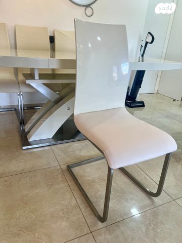 שולחן אוכל מעוצב בסגנון מודרני ויוקרתי, רגלי מתכת בצורת X משטח איכותי. מצב שמור מאוד אורך 160 סמ נפתח ליותר מתאים לאירוח רוחב 90 סמ גובה 78 סמ בנוסף 6 כסאות הכל במצב כחדש, חזק ופרקטי, מתאים גם לפינת אוכל משפחתית וגם לאירוח גדולפרטים נוספים