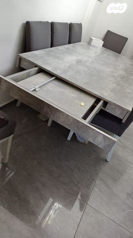 שולחן בגווני אפור מסיבי וחזק נפתח בשתי צידיו. ממש חזק ויפה. המחיר המצוין הוא ללא כסאות. הכסאות ישנם. חזקות מאד אך דורשות החלפת ריפוד. הן כרגע מכוסות בכיסוי לכסאות אך מקולפות מתחתן. 8 כסאות יימכרו בנפרד למי שמעוניין. 100 שח לכסאפרטים נוספים