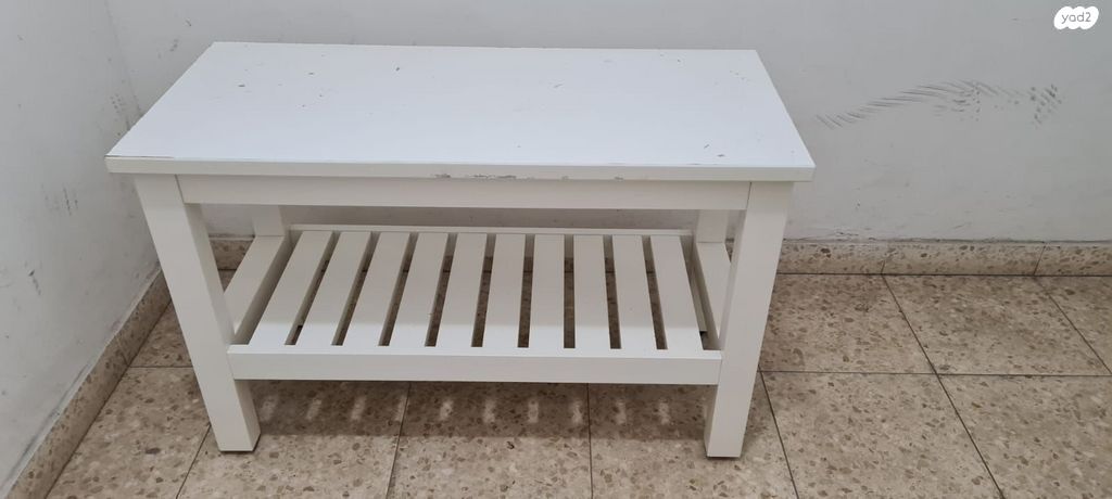 שולחן קטן לבן. עשוי מעץ M.D.F. יש קצת פגמים למעלה. מידות : אורך 83 ס"מ. רוחב 37 ס"מ. גובה 53 ס"מ. איסוף מהדר יוסף תל אביב.פרטים נוספים