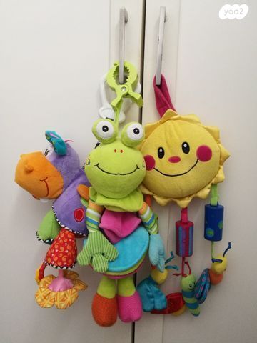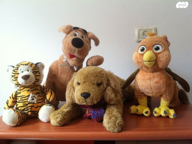 צעצועים רכים: * 2 בובות פרווה גדולות ויפות של כלב (אורך 40 ס"מ) ובובה פרוותית דיסני Disney בגודל בינוני של אפרוח מעופף - 100 ש"ח. * בובה פרווה חמודה של נמר ובובה צבעונית - 30 ש"ח. * 4 קוביות פאזל גדולות להתאמת דמויות - 30 ש"ח. * 11 צעצועים אינטראקטיביים צבעוניים לקטנטנים תינוקות/פעוטות הניתנים לתליה, פעמוני רוח, suction לתליה על חלון/שמשה, מנגנים, מרשרשים ומפיקים צלילים במגע - 200 ש"ח לכולם יחד.פרטים נוספים